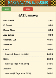 Das bedeutet, ihr könnt aktiv Ausflüge buchen, die Buchungsanfrage wird über WhatsApp zu BISHOO-TAXI weitergeleitet und bestätigt.